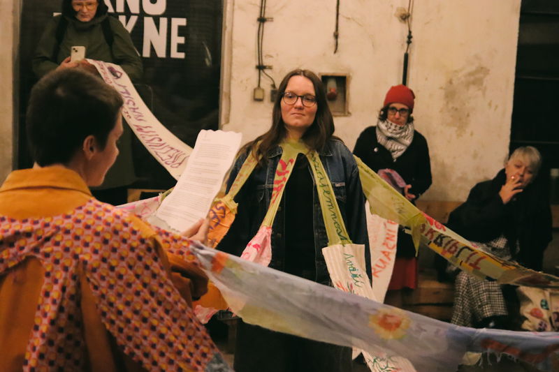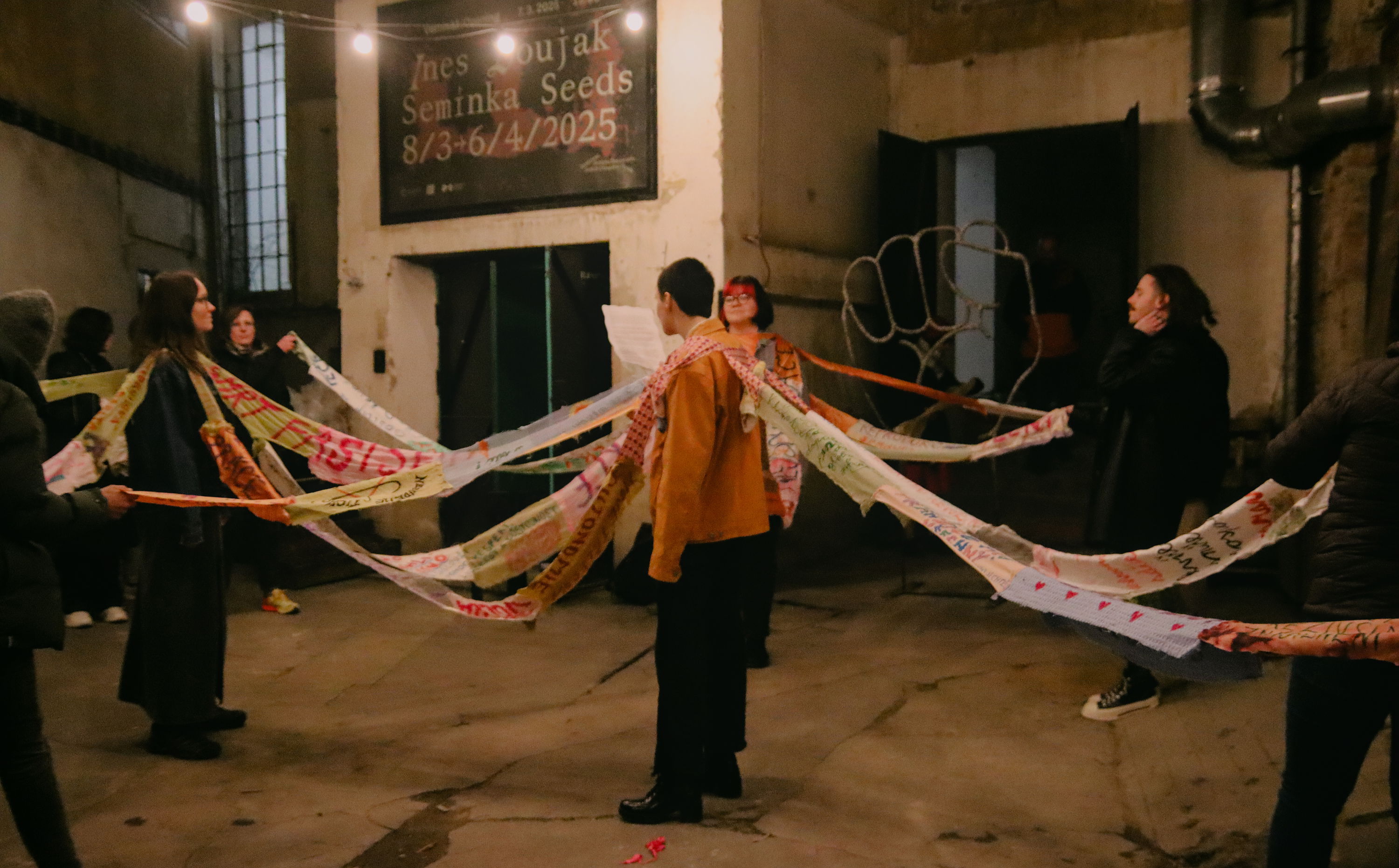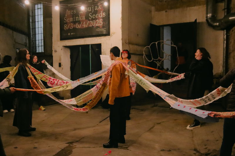 Manifest k mezinárodnímu dni žen - kolektiv Sdruženy na vernisáži výstavy Ines Doujak: Semínka
