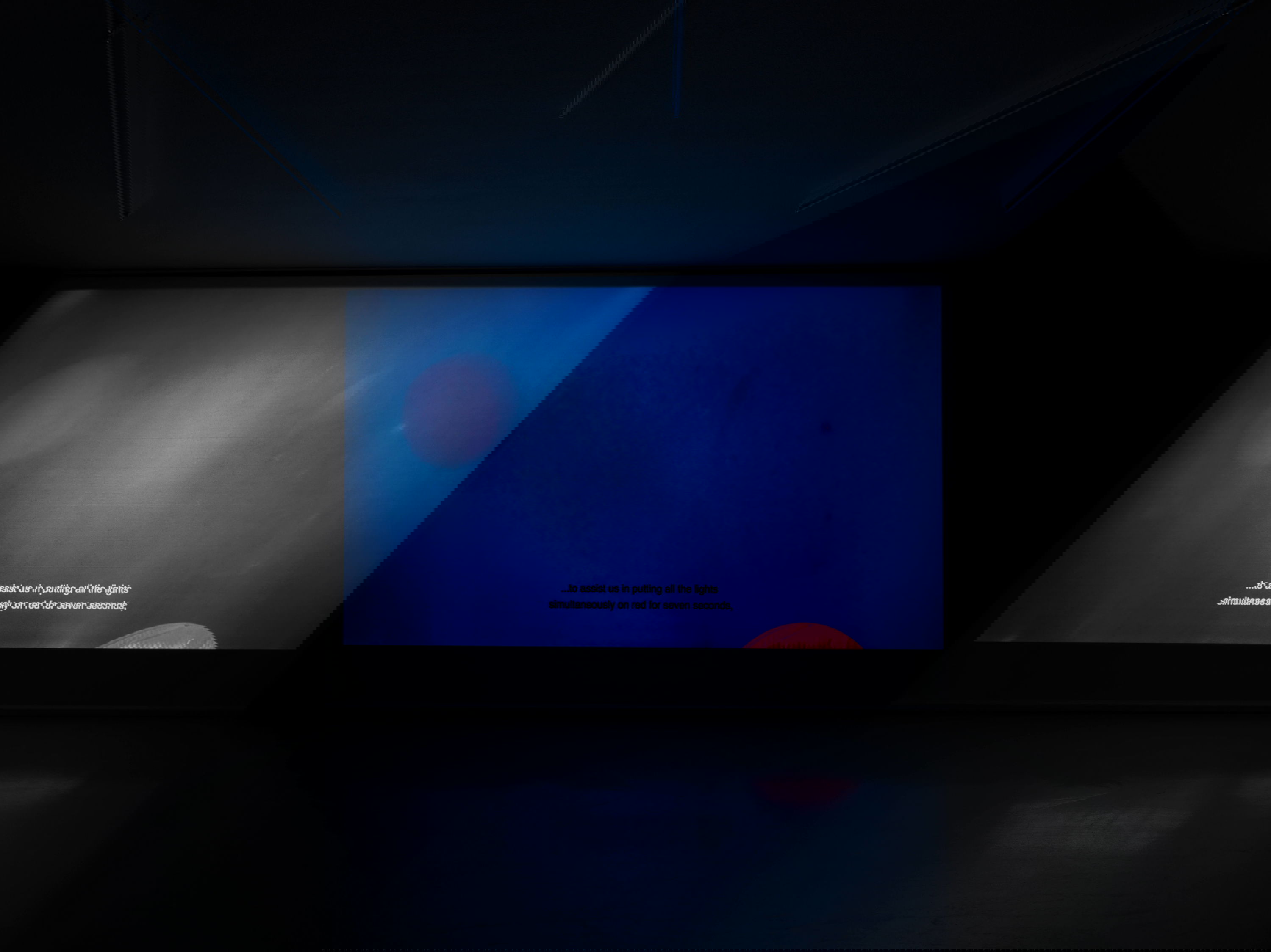 „Je tvá modrá stejná jako ta má?“ ptá se dívka. Vidí dvoje oči stejnou barvu stejně? Naše realita se postupně vzdaluje a každý z nás si žije ve vlastním soukromém rozměru. Rytmus našich životů, emocionální očekávání, politická přesvědčení i náš pohled na sebe sama se pohybují po trajektoriích, jež se nikdy neprotnou, a jejich nekonečné množství zaplňuje vesmír. Je vůbec možné, aby se všechny naše trajektorie setkaly? Sugestivní videoinstalace Valentýny Janů představuje protagonistku, která se podobá „mladé dívce“, kterou v roce 1999 popsala umělecká skupina Tiqqun jako hlavní symbol a produkt kapitalistické společnosti. Dívka, kterou zobrazuje Janů, však není redukována na pouhý symbol konzumního přístupu k životu. Je provokativní a živá, zároveň se však kriticky zamýšlí nad (umělou) realitou, v níž se pohybuje.