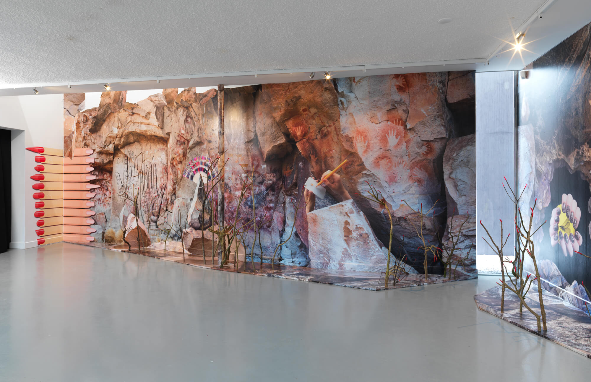 Instalace uměleckého dua, jež tvoří Anetta Mona Chisa a Lucia Tkáčová, upravená podle specifik výstavního prostoru Kunstvereniging Diepenheim, diváka zve do prostředí připomínajícího jeskyni či kvazi-archeologické naleziště stárnoucích technologií a trendů krásy namixovaných s prastarými symboly; kosmetický salon zbytků z okolních lesů. Všudypřítomné ruce evidentně vyměnily prehistorický pazourek za rytmické ťukání do klávesnice laptopu. Instalace je chrámem ztracených a nalezených spojitostí – mezi současným nastavením mysli a našimi kořeny, ze kterých se staly vyprázdněné a kopírované symboly; mezi příslušností k planetě Zemi a natahováním se po i Phonu, který už se stal naší druhou přirozeností. Vyobrazená krása je tak ve výsledku ohrožující, zraňující a potenciálně nebezpečná.